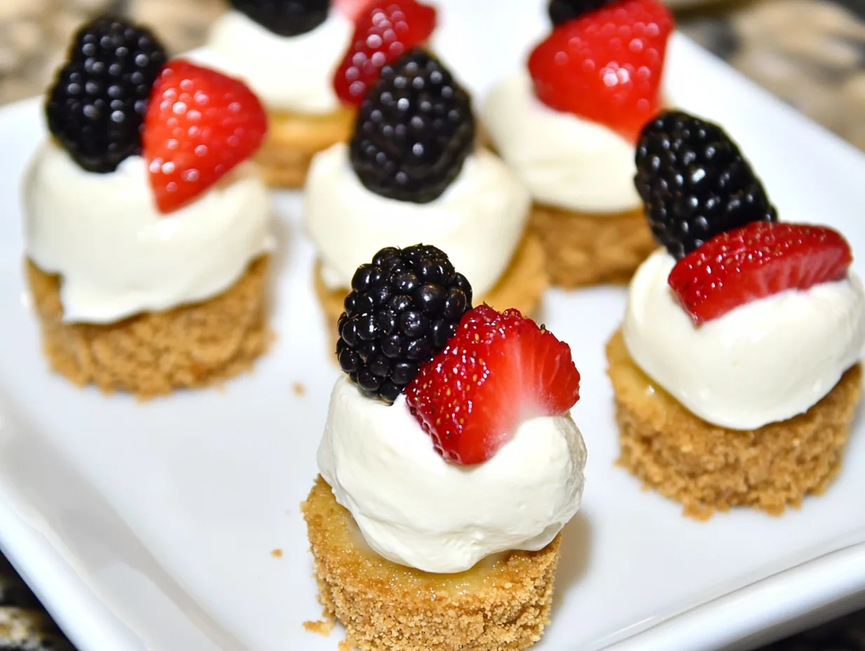 - Top the Mini Cheesecake Bites with your favorite toppings, such as fresh berries, whipped cream, or a drizzle of chocolate ganache.